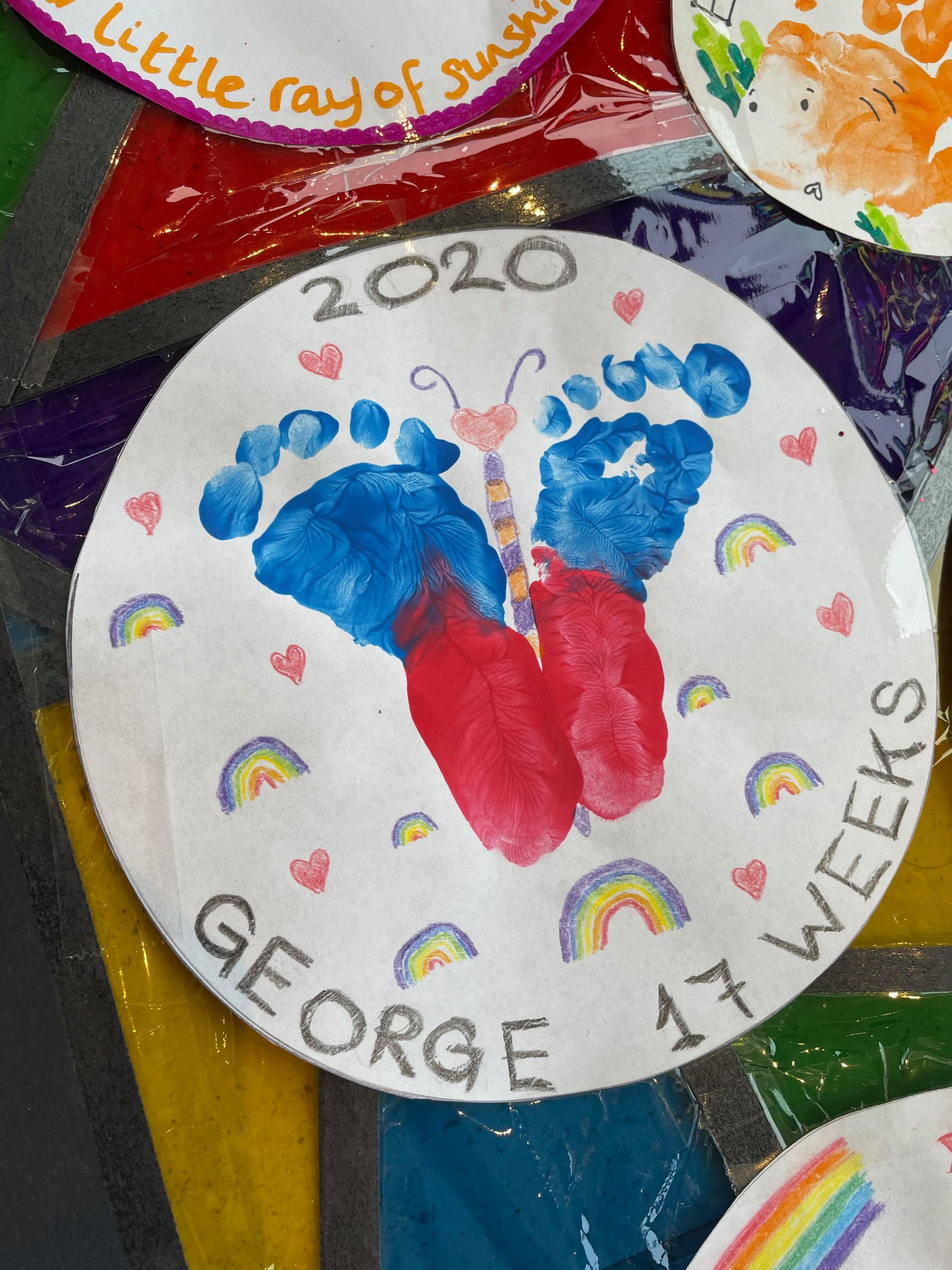 “It has been heartwarming seeing all of the prints and the creativity from parents as many of the hand and footprints have been turned into animals or flowers, making the display fun for all passers by to admire. The project has created a superb buzz amongst the group and a much needed mood uplift. We are thrilled with how the display looks during the day, and it will be lit for the evening event so everyone will be able to see a very pretty stained glass window effect.”